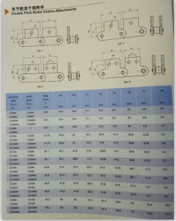 帶直立板鏈條 節(jié)距50.8毫米的雙節(jié)距單孔輸送鏈條 給聊城張經(jīng)理制造的C2082的鏈條 節(jié)距50.8毫米,直立板上沖孔直徑是11.0毫米,直立板的寬度是38.1毫米,銷軸的中心到彎板上面的距離是37.4毫米,銷軸的中心到直板沖孔的距離是22.2毫米,價格是45元/米 共200米。工期3天。