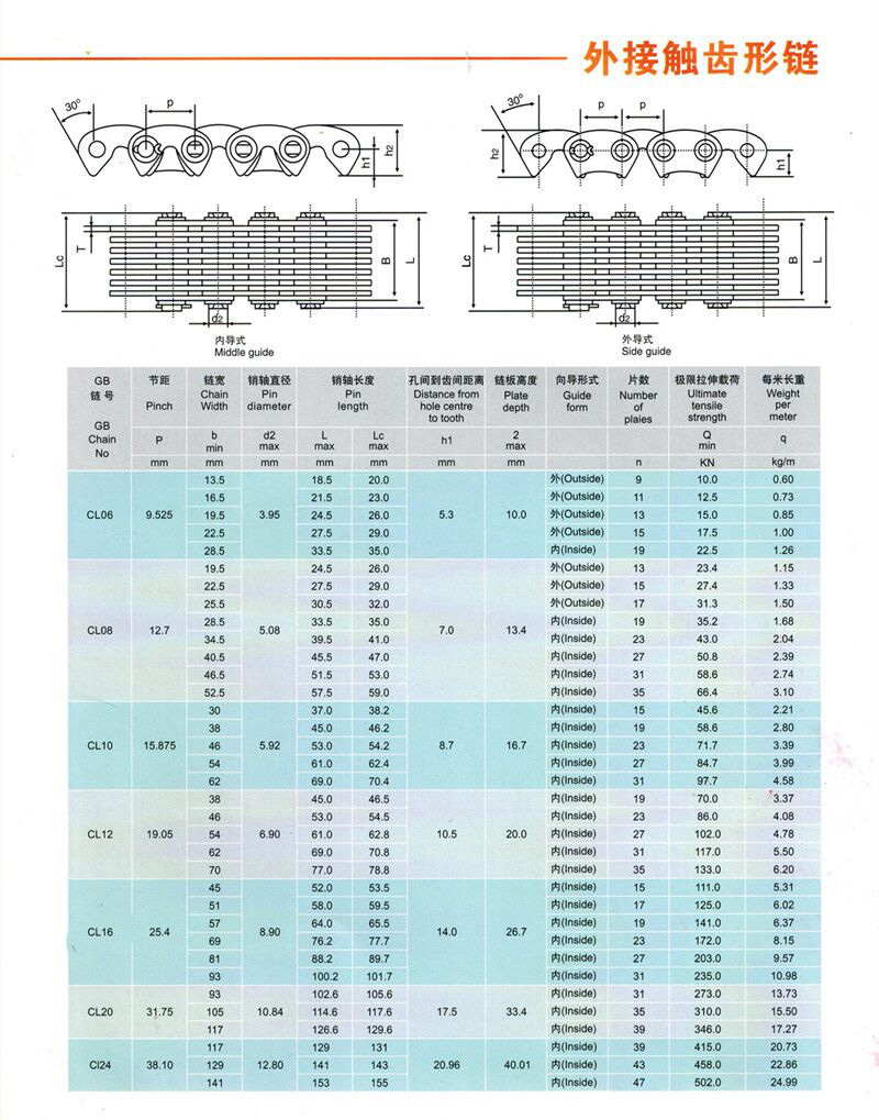 2,單軸的齒形鏈條有CL06 CL08 CL10 CL12 CL16 CL20 CL24