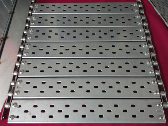名稱(chēng):鏈板輸送帶 別稱(chēng):沖孔的鏈條板式輸送帶