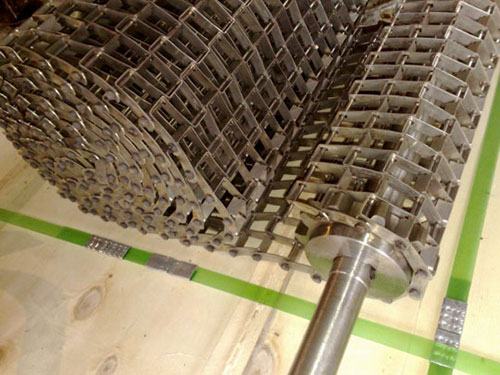馬蹄鏈又稱長城網(wǎng),由扁平金屬片和圓金屬絲所組成,網(wǎng)帶自重輕,網(wǎng)孔空隙大,網(wǎng)面平整,運行平穩(wěn),不會走偏??勺飨礈臁⒏稍?、冷卻、熱處理的輸送線。