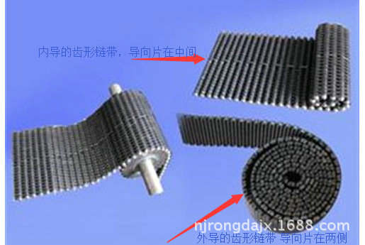 外導(dǎo)無聲齒形鏈帶就是導(dǎo)向片在外側(cè),配套的無聲齒形鏈輪兩側(cè)是平的,中間是帶齒的。