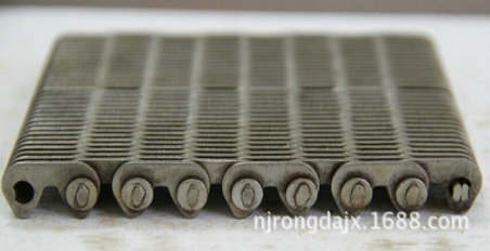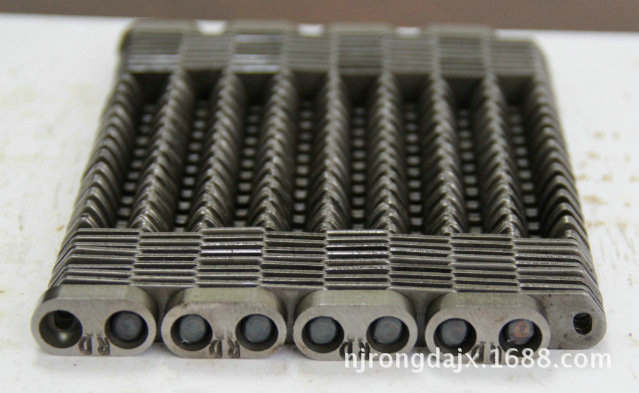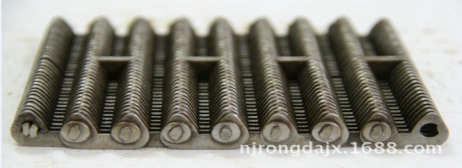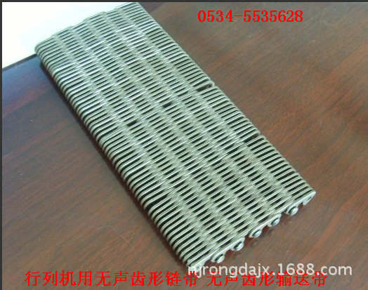 無聲齒形鏈帶:一種輸送玻璃瓶罐,玻璃器皿容器,陶瓷瓶子的無聲齒形輸送帶,也叫無聲齒形鏈條,網(wǎng)帶。無聲齒形鏈帶采用特殊熱處理工藝,解決了現(xiàn)在國內(nèi)熱處理不過關(guān)的問題,鏈片采用鏈條專用鋼帶鍛壓而成,熱處理厚度0.2毫米,外硬內(nèi)軟,這樣的熱處理工藝,解決了處理硬度大了,斷片。熱處理硬度小了,不耐磨的問題。使用壽命大大延長(正常使用下3-5年),按中心距離分兩種:12.7毫米,25.4毫米。