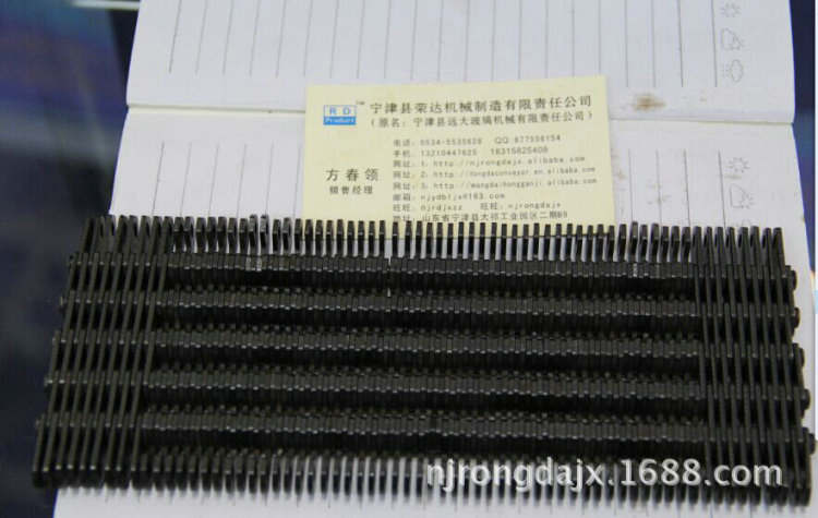 寧津縣榮達(dá)機(jī)械制造有限責(zé)任公司銷售無聲齒形鏈條,無聲齒形鏈帶,配套與美國EMHART和意大利BOTTERO行列式制瓶機(jī)上。用來輸送玻璃制品,玻璃瓶子,玻璃罐,玻璃容器等等。
