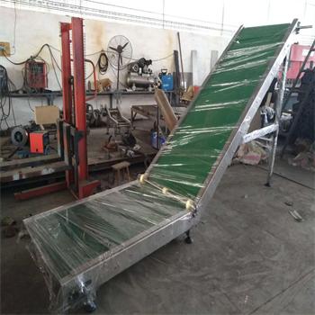 不銹鋼大架皮帶提升機(jī) 綠色皮帶機(jī)。給河北客戶制造的皮帶機(jī)。不帶電機(jī)的,水平段長1.5米,提升角度37度,提升高度2米,水平段高度350毫米,皮帶厚5毫米,帶橫擋板,橫擋板間距400毫米,橫擋板有效高度20毫米。
