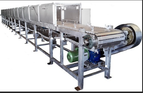 鍛造件鏈板輸送機(jī)是直接輸送高溫鍛造件的,其輸送帶必須能不怕熱,不變形,還耐高溫很強(qiáng)才可以承載鍛造件。我們采用的是耐熱的不銹鋼鏈板輸送帶。根據(jù)寬度不同,有平頂鏈鏈板輸送帶,合頁(yè)鏈板輸送帶和槽鋼鏈板輸送帶。已標(biāo)準(zhǔn)的頂板鏈或合頁(yè)鏈板輸送帶為承載面,以馬達(dá)減速機(jī)做動(dòng)力傳動(dòng)。