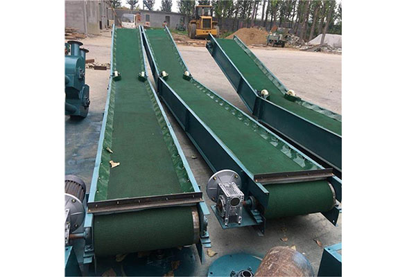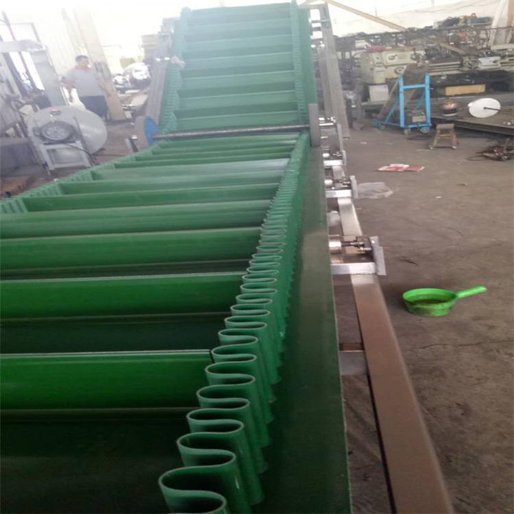 綠色皮帶提升輸送機,帶橫側擋板的綠色皮帶機,帶裙邊輸送機。