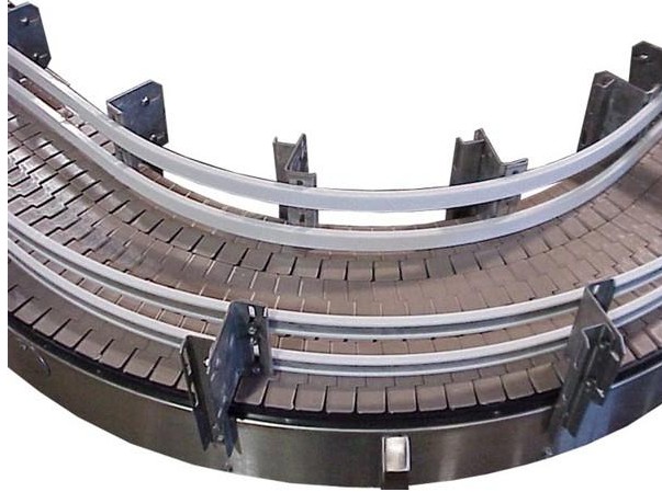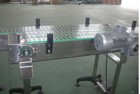 平頂鏈鏈板輸送機 能夠拐彎 升降的板式輸送帶 按客戶的要求,除了水平直輸外,還能滿足其他的要求,這種輸送機的特點就是耐磨耐腐,結構精密,輸送平穩(wěn),輸送面平穩(wěn)不倒瓶,在兩邊加側擋板,按輸送瓶子的大小,側擋板可以調(diào)節(jié)距離。