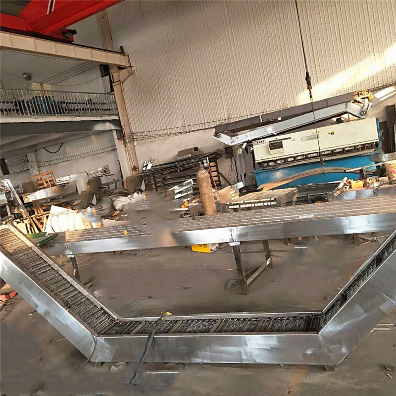 網(wǎng)鏈輸送機 該輸送機用于物料的輸送。采用不銹鋼網(wǎng)帶作為載體,適用于各種食品行業(yè)的烘干、去濕、冷凍等、熱處理等;不銹鋼制成,具有耐高溫、便于清洗等特點。