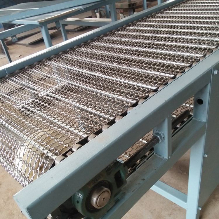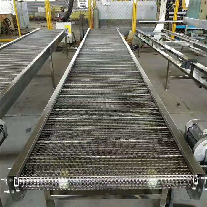 網帶輸送機是在一定的線路上連續(xù)輸送物料的物料搬運機械,又稱連續(xù)輸送機,可分為網帶式和網鏈式。輸送機可進行水平、傾斜和垂直輸送,也可組成空間輸送線路,輸送線路一般是固定的。輸送機輸送能力大,運距長,還可在輸送過程中同時完成若干工藝操作.網帶輸送機制作采用的材質有,碳鋼,201不銹鋼,304不銹鋼。
