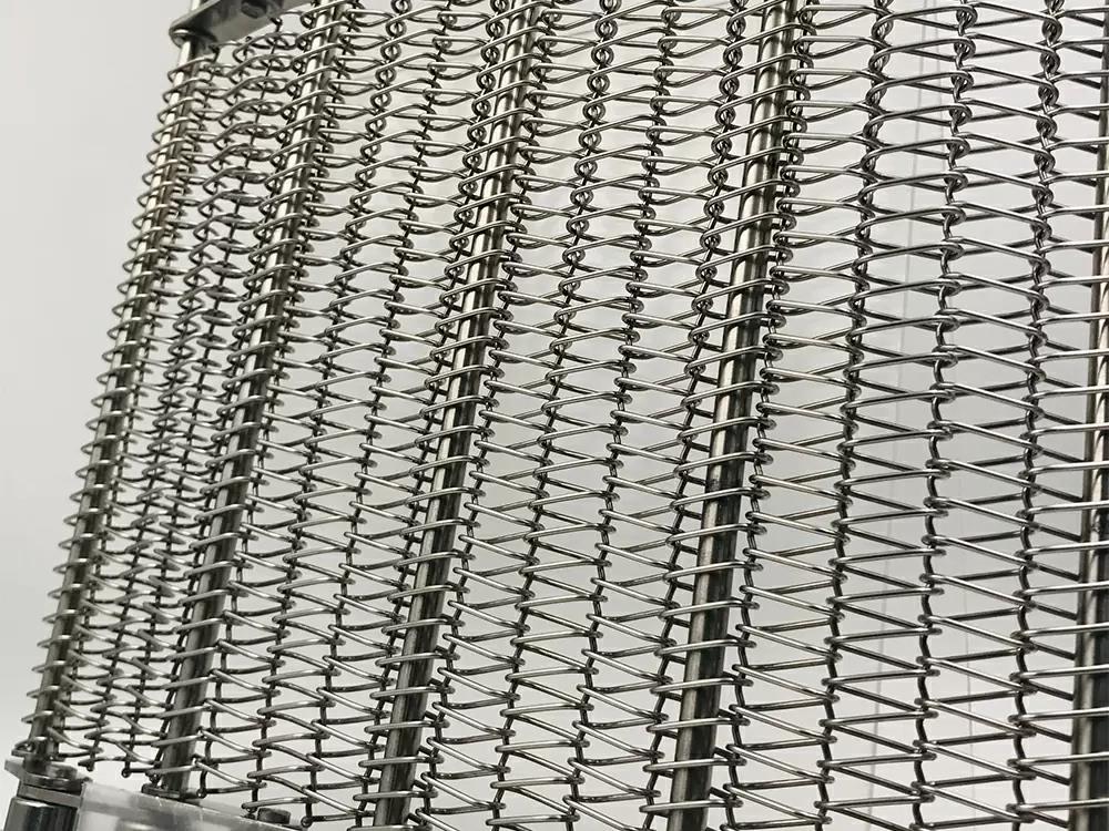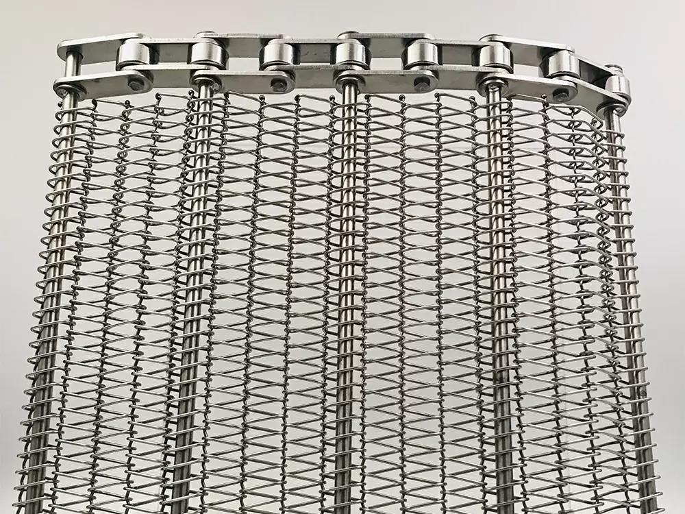 鏈條傳動(dòng), 運(yùn)行平穩(wěn),網(wǎng)面相對受力小 網(wǎng)面平整,支軸支撐,網(wǎng)帶能承受較高的載荷和抗拉強(qiáng)度 鏈條網(wǎng)支軸,齒輪運(yùn)行,無需摩擦,可進(jìn)行直線,斜坡,重載 和長距離輸送