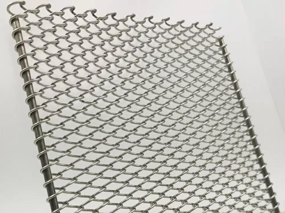 菱形網(wǎng)帶是指網(wǎng)帶的成型方式為編織網(wǎng)帶式,成規(guī)則的菱形狀 ,因此叫做菱形網(wǎng)帶。菱形網(wǎng)帶的特點是靈活性好,運行平穩(wěn),網(wǎng)孔大,透氣性好,便于清洗,安裝,維修,拆卸。菱形網(wǎng)帶主要用于食品生產(chǎn)線,電子產(chǎn)品輸送線。