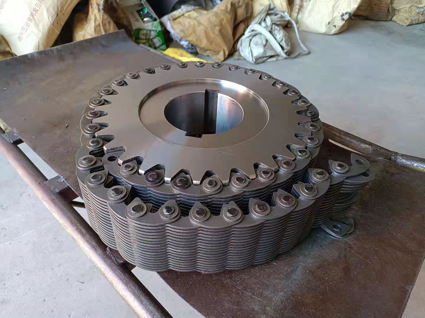 無聲鏈 齒形鏈輪 無聲鏈:也叫齒形鏈條,采用無聲齒形鏈輪帶動(dòng)運(yùn)轉(zhuǎn)傳動(dòng)。寧津縣榮達(dá)機(jī)械制造有限責(zé)任公司定做各種無聲齒形鏈條,無聲齒形鏈輪。我們根據(jù)客戶自己的情況,客戶選型成功,我們根據(jù)客戶的數(shù)據(jù)非標(biāo)定做各種齒形鏈條和無聲齒形鏈輪。齒形鏈條節(jié)距4.7625,6.35 9.525 12.7 15.875 19.05 25.4 31.75 38.1毫米的鏈條都能做,無聲齒形鏈輪根據(jù)客戶的齒數(shù)和外徑,內(nèi)孔,鍵槽定做。無聲齒形鏈條的獨(dú)特優(yōu)點(diǎn):高速,無噪音,高承載傳動(dòng)能力,轉(zhuǎn)矩大等等優(yōu)點(diǎn),逐漸取代精密滾子鏈條和同步帶。