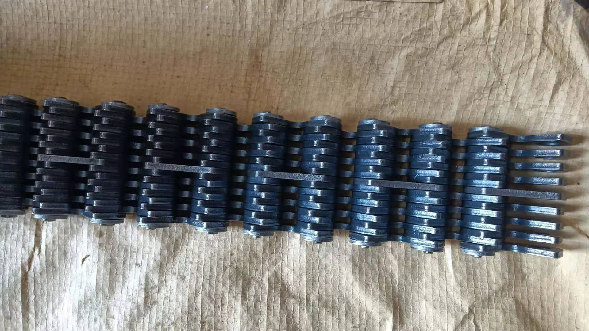 齒形鏈又稱無聲鏈(Silent Chain),屬于傳動鏈的一種形式。我國的國家標準為:GB/T10855-2003《齒形鏈和鏈輪》。齒形鏈是由一系列的齒鏈板和導(dǎo)板交替裝配且銷軸或組合的鉸接元件連接組成,相鄰節(jié)距間為鉸連節(jié)。根據(jù)導(dǎo)向型式可分為:外導(dǎo)式齒形鏈、內(nèi)導(dǎo)式齒形鏈和雙內(nèi)導(dǎo)齒形鏈.齒形鏈又稱無聲鏈,屬于傳動鏈的一種形式。齒形鏈是一種應(yīng)用廣泛的重要機械基礎(chǔ)件,主要用在高速、重載、低噪音、大中心距的工況下,其傳動性能優(yōu)于齒形帶傳動、齒輪傳動以及磙子鏈傳動,以成為眾多行業(yè)首選對傳動形式之一,以嚙合形式分可分為內(nèi)嚙合齒形鏈、外嚙合齒形鏈和內(nèi)外復(fù)合嚙合齒形鏈,其中內(nèi)外復(fù)合嚙合齒形鏈的噪音最小,應(yīng)用也最廣泛。主要特點:1.噪音小 齒形鏈是通過工作鏈板與鏈輪齒的漸開線齒形進行嚙合傳遞動力,與滾子鏈和套筒鏈相比其多邊形效應(yīng)明顯降低,沖擊小、運動平穩(wěn)、嚙合噪音較小。2.可靠性較高 齒形鏈的鏈節(jié)是多片式結(jié)構(gòu),當其中個別鏈片在工作中遭到破壞時并不影響整根鏈條的工作,使人們能夠及時發(fā)現(xiàn)并更換,如需增加承載能力只需在寬度方向較小尺寸(增加鏈片排數(shù))。3.運動精度高 齒形鏈各鏈節(jié)磨損伸長均勻,可保持較高的運動精度。齒形鏈條主要應(yīng)用范圍:齒形鏈主要應(yīng)用在紡織機械和無心磨床,傳送帶機械設(shè)備。齒形鏈條的種類:CL06,CL08,CL10,CL12,CL16,CL20。根據(jù)導(dǎo)向分:內(nèi)導(dǎo)的齒形鏈條和外導(dǎo)的齒形鏈條,內(nèi)外復(fù)合的齒形鏈條
