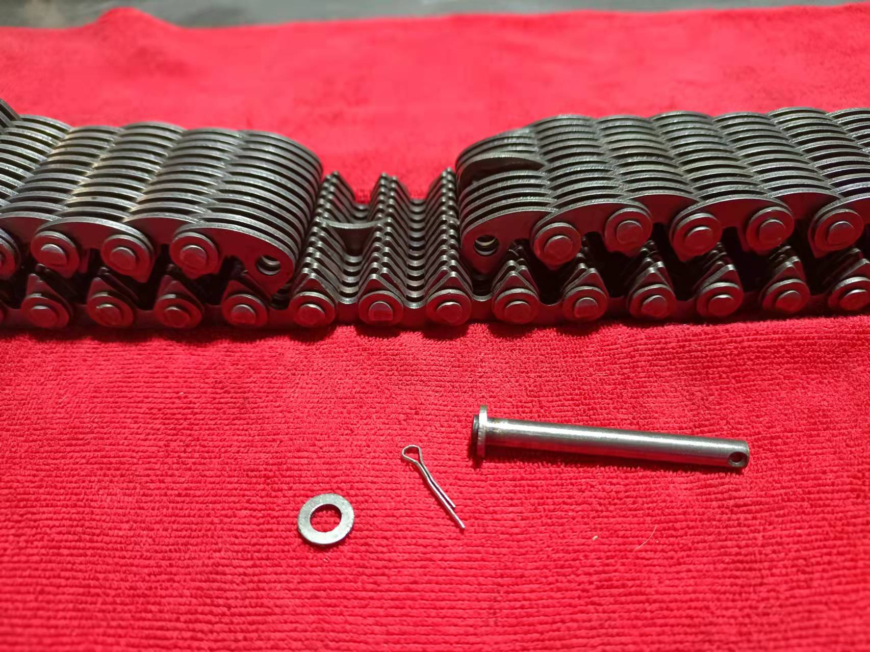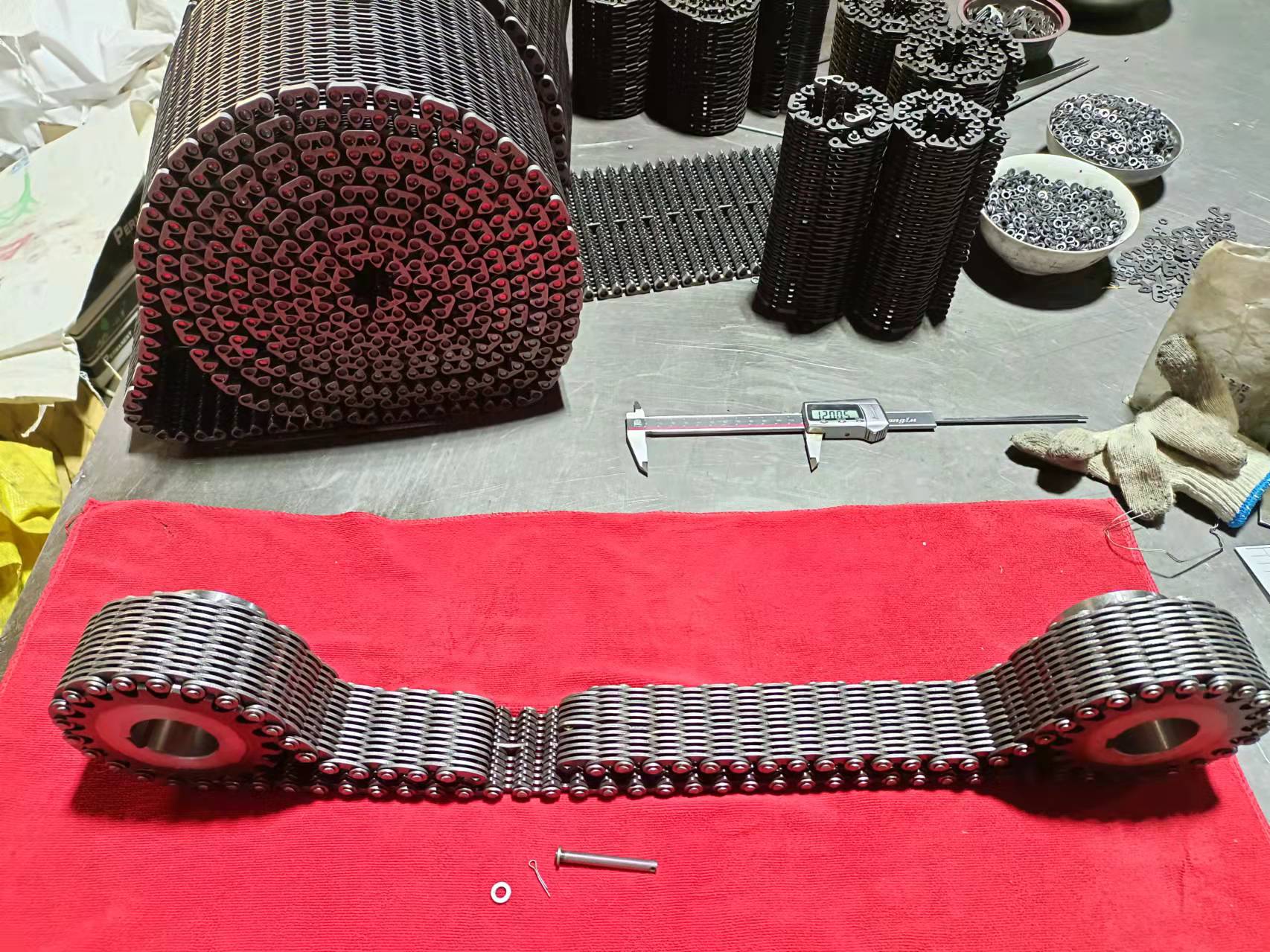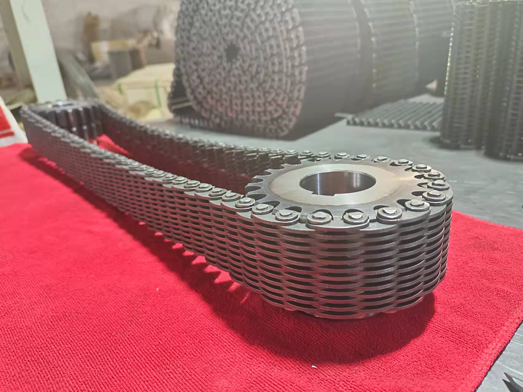 無聲齒形鏈條生產(chǎn)廠家 無聲齒形鏈帶輪:一種傳動(dòng)配件,通過帶動(dòng)無聲齒形鏈帶,來輸送玻璃瓶罐,陶瓷玻璃制品,無聲齒形鏈帶輪是一種圓柱形外齒齒輪,直齒的無聲齒形鏈帶,分內(nèi)導(dǎo)和外導(dǎo),是玻璃行列機(jī)輸瓶機(jī)上用的一種傳動(dòng)配件,無聲齒形鏈帶輪材質(zhì)45#鋼,40CR,耐高溫耐磨都經(jīng)過淬火熱處理,內(nèi)孔鍵槽根據(jù)客戶要求定做,有125毫米 150毫米 200毫米 300毫米,厚度根據(jù)客戶要定做,節(jié)距有12.7毫米,25.4毫米。無聲齒形鏈帶輪可以發(fā)黑處理,做防銹處理,做減輕孔
