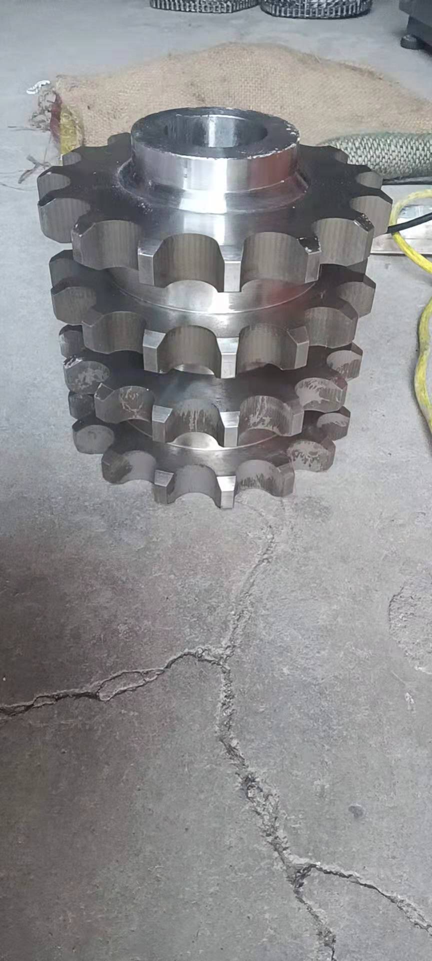 廠家直銷不銹鋼鏈輪的結(jié)構(gòu):鏈輪一種帶嵌齒式扣鏈齒的輪子,用以與節(jié)鏈環(huán)或纜索上節(jié)距準(zhǔn)確的塊體相嚙合。鏈輪被廣泛應(yīng)用于化工、紡織機械、食品加工、儀表儀器、石油等行業(yè)的機械傳動等。鏈輪結(jié)構(gòu)設(shè)計:1、鏈輪的齒形鏈輪齒形必須保證鏈節(jié)能平穩(wěn)自如地進(jìn)入和退出嚙合,盡量減少嚙合時的鏈節(jié)的沖擊和接觸應(yīng)力,而且要易于加工。它是由三段圓弧aa、ab、cd和一段直線bc構(gòu)成,簡稱三圓弧-直線齒形。齒形用標(biāo)準(zhǔn)刀具加工,在鏈輪工作圖上不必繪制端面齒形,只需在圖上注明"齒形按3RGB1244-85規(guī)定制造"即可,但應(yīng)繪制鏈輪的軸面齒形,其尺寸參閱有關(guān)設(shè)計手冊。2、鏈輪結(jié)構(gòu)小直徑鏈輪一般做成整體式,中等直徑鏈輪多做成輻板式,為便于搬運、裝卡和減重,在輻板上開孔,大直徑鏈輪可做成組合式,此時齒圈與輪芯可用不同材料制造。例如C45,不銹鋼等材料。3、鏈輪材料鏈輪材料應(yīng)保證輪齒有足夠的強度和耐磨性,故鏈輪齒面一般都經(jīng)過熱處理,使之達(dá)到一定硬度。