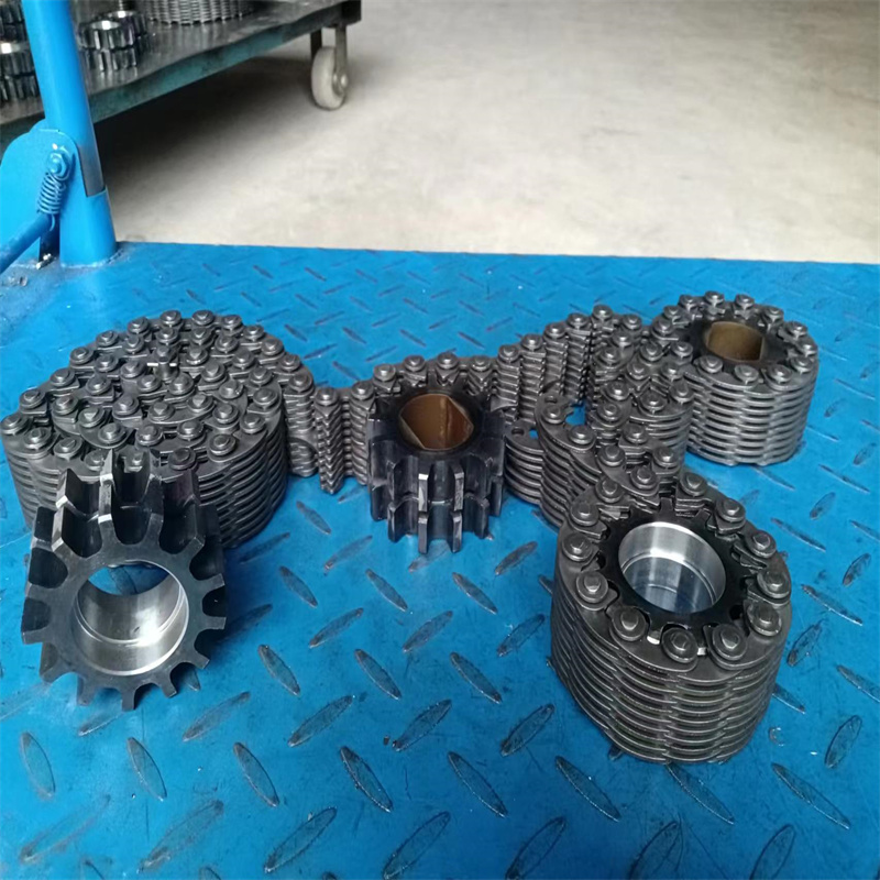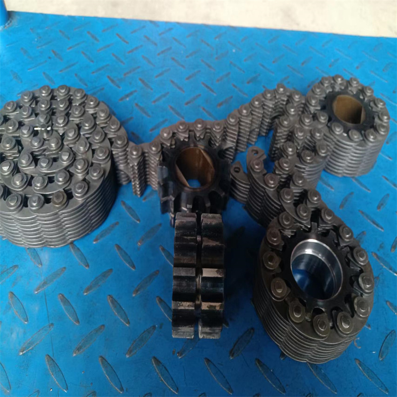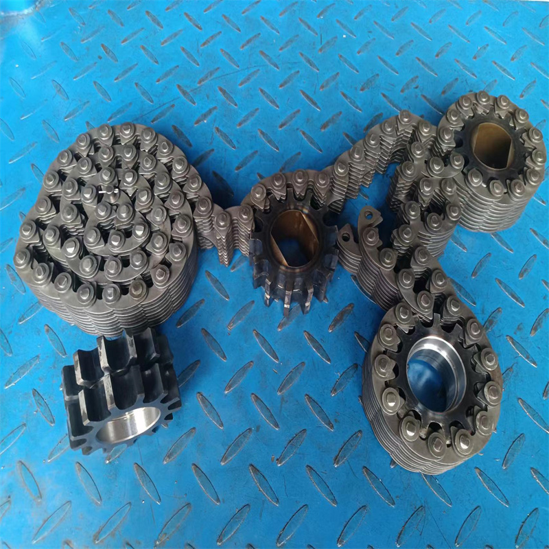 無聲鏈 齒形鏈輪 無聲鏈:也叫齒形鏈條,采用無聲齒形鏈輪帶動運轉傳動。寧津縣榮發(fā)齒輪廠定做各種無聲齒形鏈條,無聲齒形鏈輪。我們根據(jù)客戶自己的情況,客戶選型成功,我們根據(jù)客戶的數(shù)據(jù)非標定做各種齒形鏈條和無聲齒形鏈輪。齒形鏈條節(jié)距4.7625,6.35 9.525 12.7 15.875 19.05 25.4 31.75 38.1毫米的鏈條都能做,無聲齒形鏈輪根據(jù)客戶的齒數(shù)和外徑,內孔,鍵槽定做。無聲齒形鏈條的獨特優(yōu)點:高速,無噪音,高承載傳動能力,轉矩大等等優(yōu)點,逐漸取代精密滾子鏈條和同步帶。