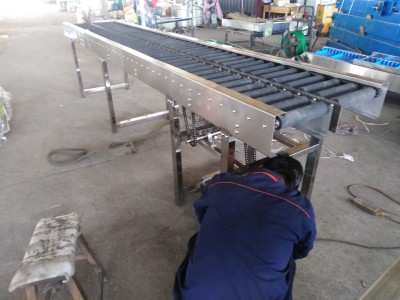 滾筒輸送機適用于各類箱、包、托盤等件貨的輸送,散料、小件物品或不規(guī)則的物品需放在托盤上或周轉箱內(nèi)輸送。能夠輸送單件重量很大的物料,或承受較大的沖擊載荷,滾筒線之間易于銜接過渡,可用多條滾筒線及其它輸送機或專機組成復雜的物流輸送系統(tǒng),完成多方面的工藝需要。可采用積放滾筒實現(xiàn)物料的堆積輸送。滾筒輸送機結構簡單,可靠性高,使用維護方便。滾筒輸送機適用于底部是平面的物品輸送,主要由傳動滾筒、機架、支架、驅動部等部分組成。具有輸送量大,速度快,運轉輕快,能夠實現(xiàn)多品種共線分流輸送的特點。滾筒輸送機結構形式:按驅動方式可分為動力滾筒線和無動力滾筒線,按布置形式可分為水平輸送滾筒線、傾斜輸送滾筒 線和轉彎滾筒線。還可按客戶要求特殊設計,以滿足各類客戶的要求。標準規(guī)滾筒線內(nèi)寬度為200、300、400、500、1200mm等。也可按客戶需求采用其它特殊規(guī)格。轉彎滾筒線標準轉彎內(nèi)半徑為600、900、1200mm等,也可按客戶需求采用其它特殊規(guī)格。直段滾筒所用的滾筒直徑有38、50、 60、76、89mm  滾輸送機的注意事項 :第一:物品在輸送的任何時間點,物品底部都必須有最少有三根滾與物品底部接觸  第二:滾筒輸送機先空載啟動,運行正常在放物料,停止放物料,再停機。